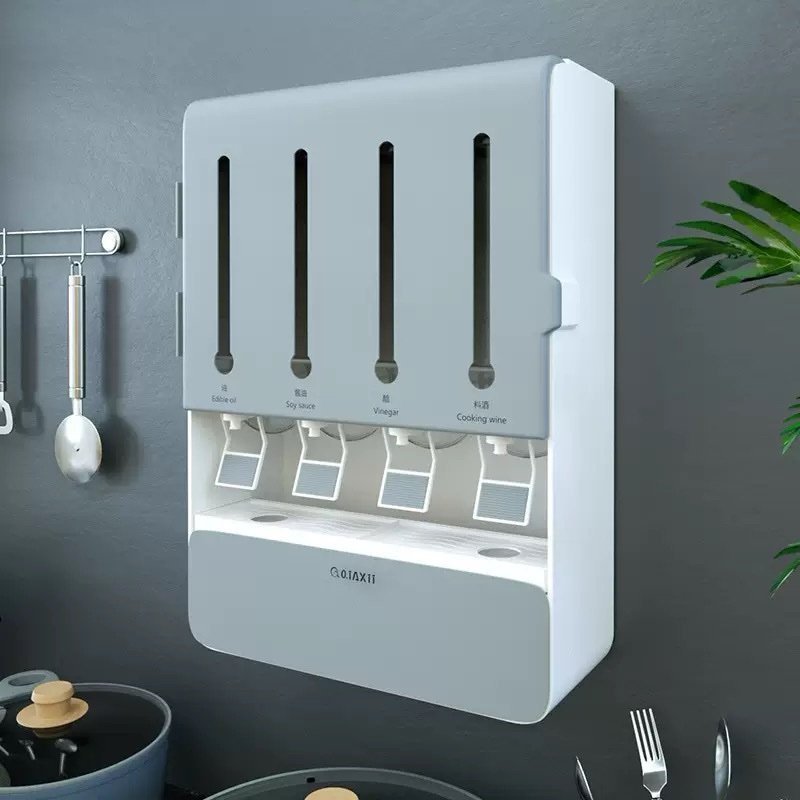 Optimisez l’espace de votre cuisine avec ce distributeur mural tout-en-un de 3200 ml. Conçu pour allier élégance et praticité, il comprend 4 réservoirs pour liquides (sauces, huiles, vinaigre…) et 4 compartiments à épices ou aliments secs (riz, sucre, graines, etc.).