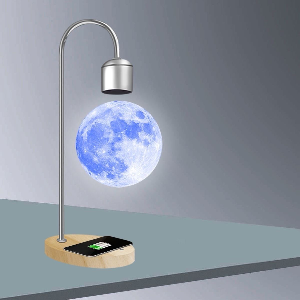 lampe LED lévitante en forme de lune, combinant design futuriste et technologie innovante. Voici une description détaillée :
