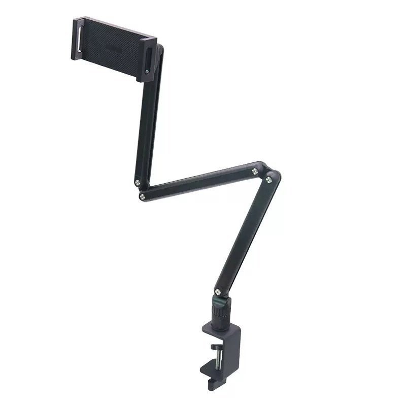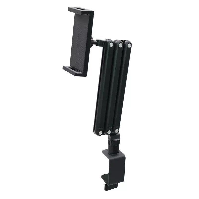 Fixation par pince robuste : Se fixe solidement au bord d’un bureau grâce à une pince en métal réglable, assurant une stabilité optimale.