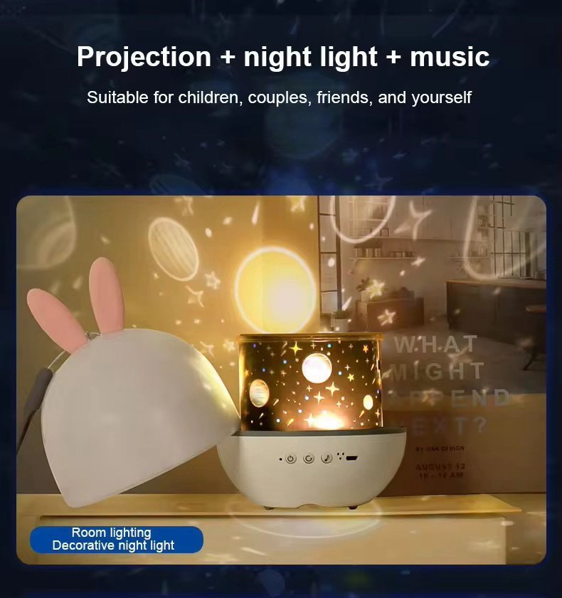 Apportez une touche magique à vos nuits avec cette veilleuse projecteur multifonction. En forme de petit lapin ou de renne adorable, elle diffuse une lumière douce et projette de magnifiques motifs d’étoiles, de planètes ou de dessins animés sur les murs et le plafond.