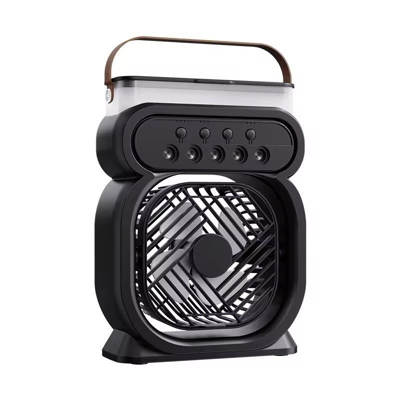 Restez au frais et profitez d’un confort optimal avec ce ventilateur brumisateur portable 3-en-1. Compact et élégant, il combine un ventilateur à 3 vitesses puissantes, un brumisateur à 5 buses pour une humidification efficace et une veilleuse LED multicolore à 7 teintes pour une ambiance agréable.